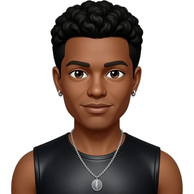 Trevor Penick from O-Town with dark brown eyes, black afro hair, black metallic sleeveless shirt, necklace and earrings emoji