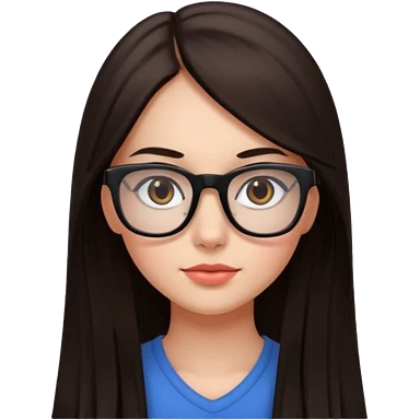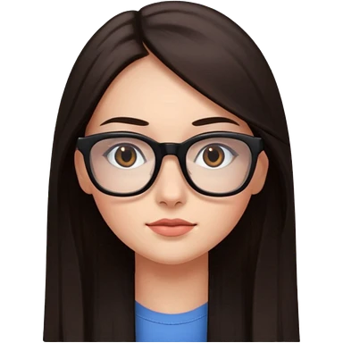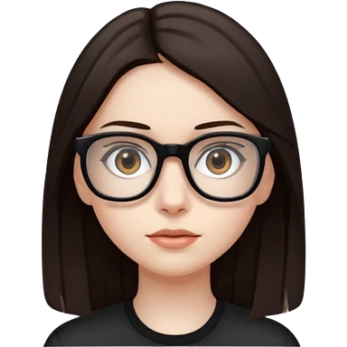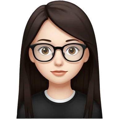 une ado, brune aux cheuveux tres fonces tres longs lisses blanche, ,lunettes carres/ rectanglesnoires, yeux bruns joues rose, haut noir emoji
