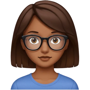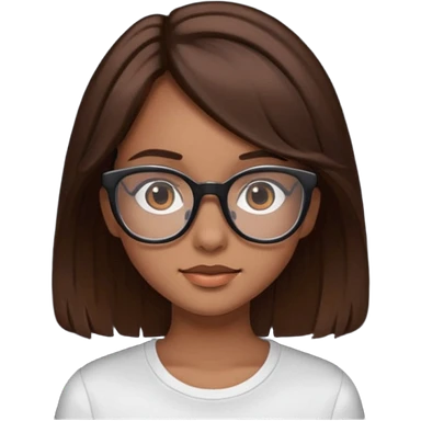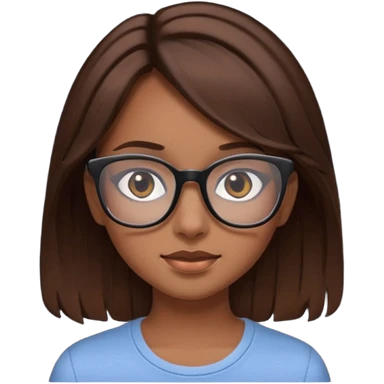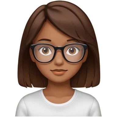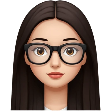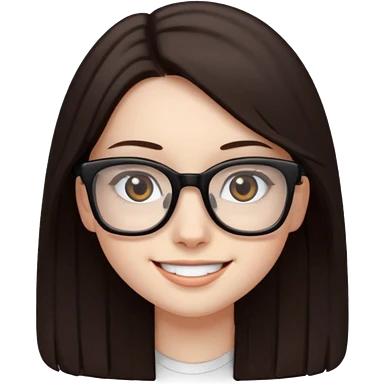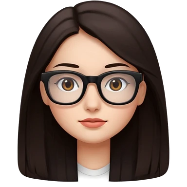 une ado, brune aux cheuveux tres fonces longs lisses blanche, ,lunettes carres noires, yeux bruns joues rose juste la tete emoji