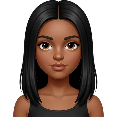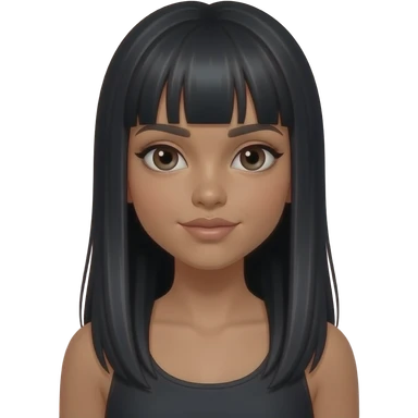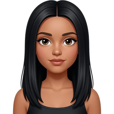 Une fille adolescente avec une peau "tan skin" avec des cheveux noirs lisses longs style clean baddie girl emoji