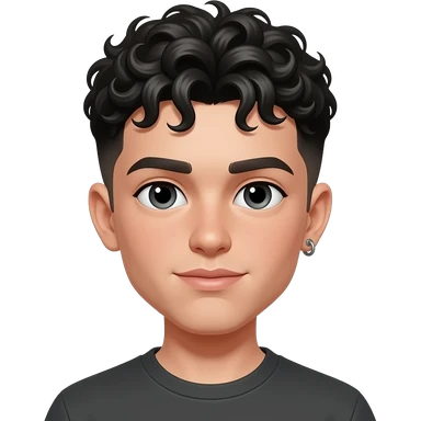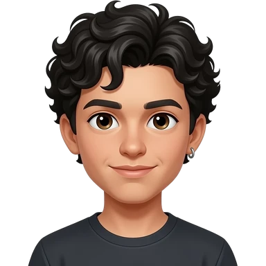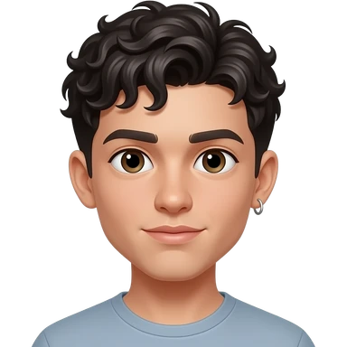 Une garçon adolescent à la peau clair avec des cheveux bouclés noir , a un percing à un oreille emoji