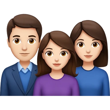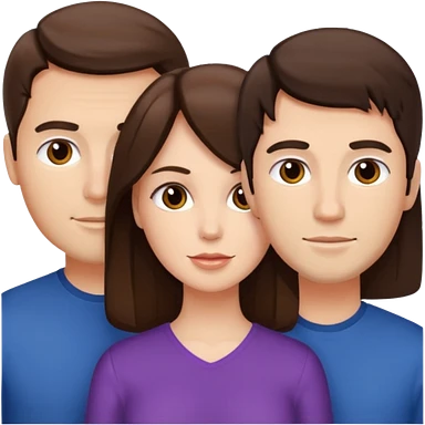 Un trio avec deux fille (cheveux brun et lisse) et un garçon ( cheveux brun et bouclés avec une couleur de peau un peut latino) emoji