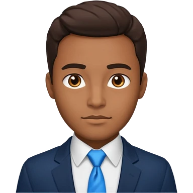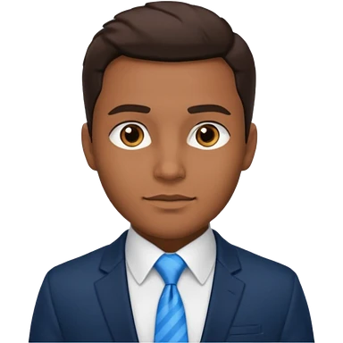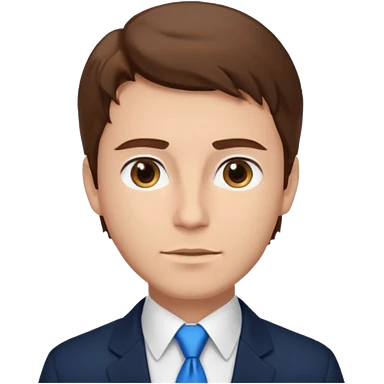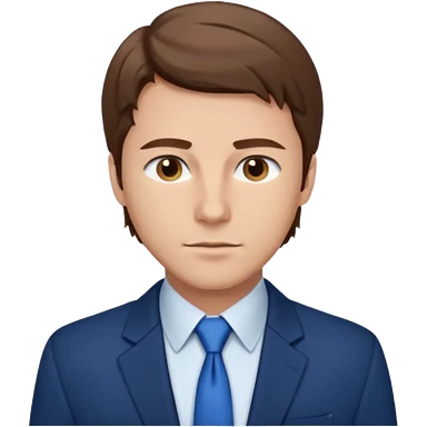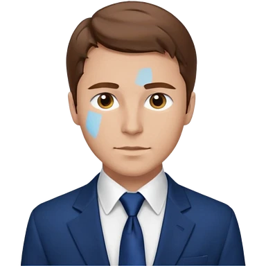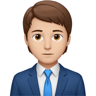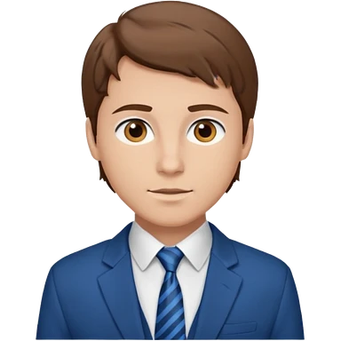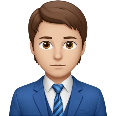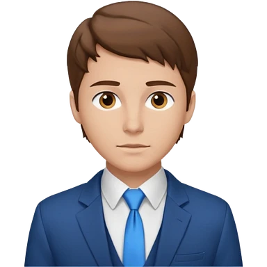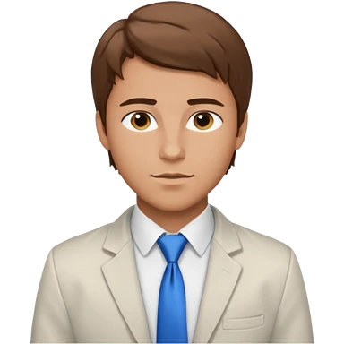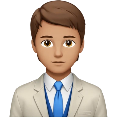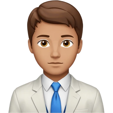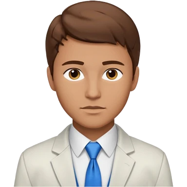 un homme type caucasien brun plutot jeune avec des jolies traits avec une chemise blanche et une veste a manche longues et cravate bleu il a les yeux marron emoji