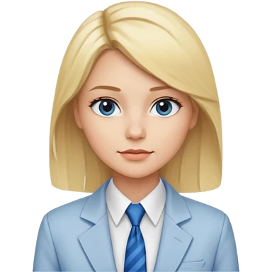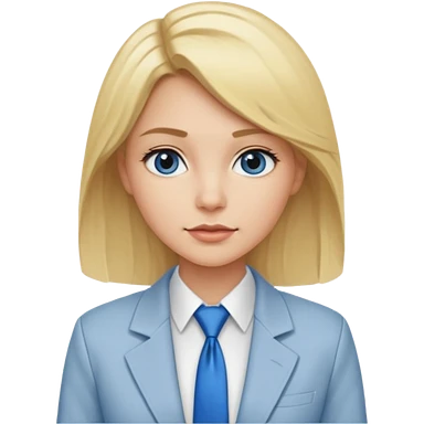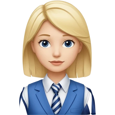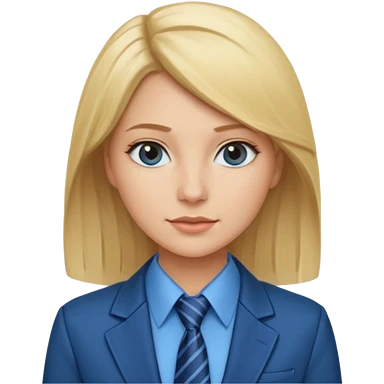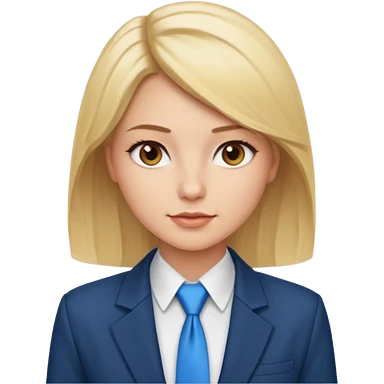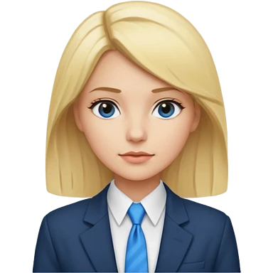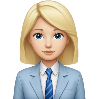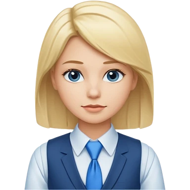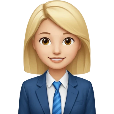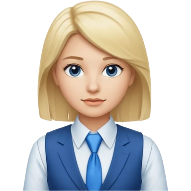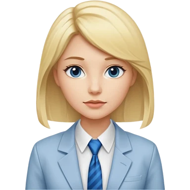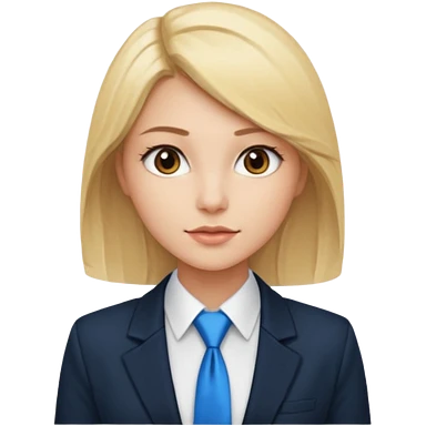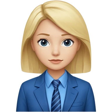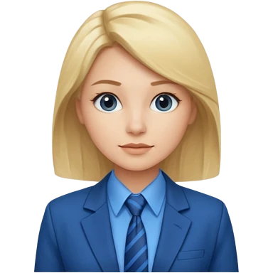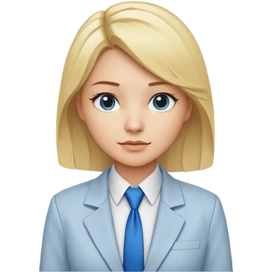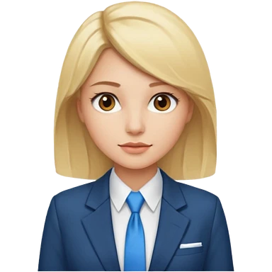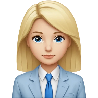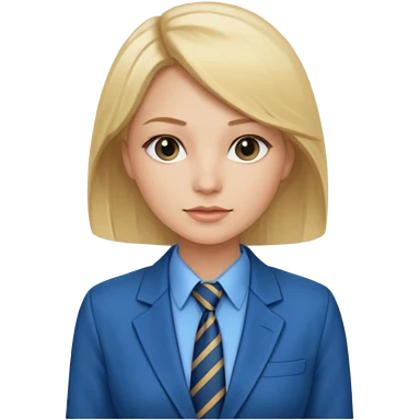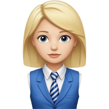 une femme blonde jolie avec une chemise blanche et une veste a manche longues et cravate bleu emoji | AI Emoji Generator
