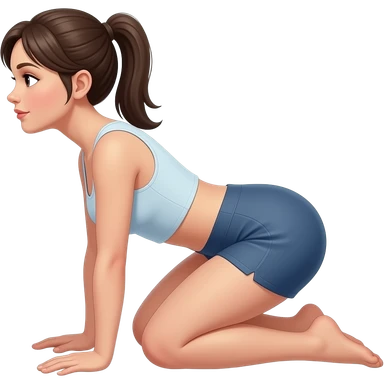 Une femme a 4 pattes dans le sens sur les genoux, les genoux touchent le sol avec les mains au sol vu de profil emoji