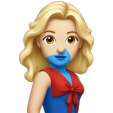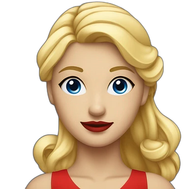 Une danseuse blonde aux yeux bleus en tenue rouge emoji