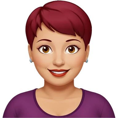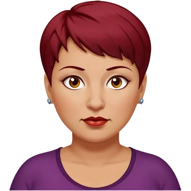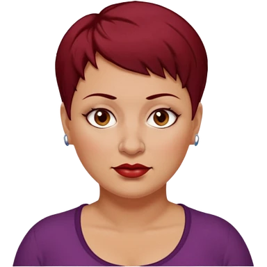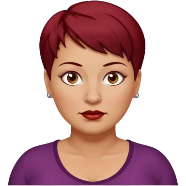 femme 40 ans, cheveux très court rouge foncé piercing sur le nez yeux marrons, surpoids emoji