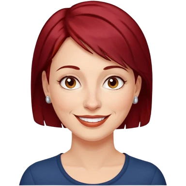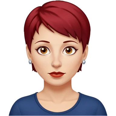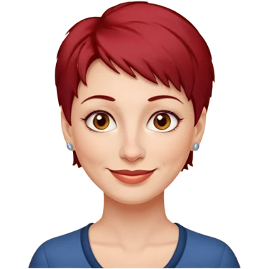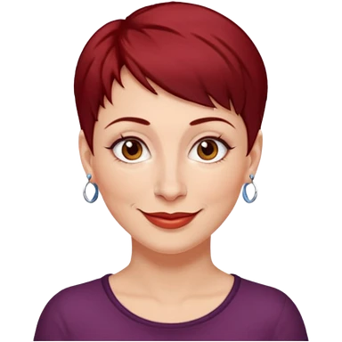 femme 40 ans, cheveux très court rouge foncé piercing sur le nez yeux marrons emoji