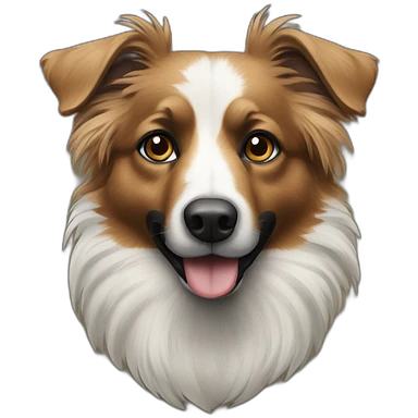 Un berger américain minuature rouge tricolore avec le museau blanc emoji