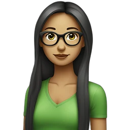 une fille avec de long cheveux noir lisse , des yeux vert , et avec des lunette (en forme de carrer un peu déformé) assez grosse comparer a ça tête emoji