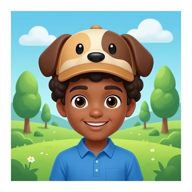 Bingo : Décor d'une salle de classe. Un garçon à la peau foncée, chemise bleue, cheveux afro et casquette en forme de chien. emoji