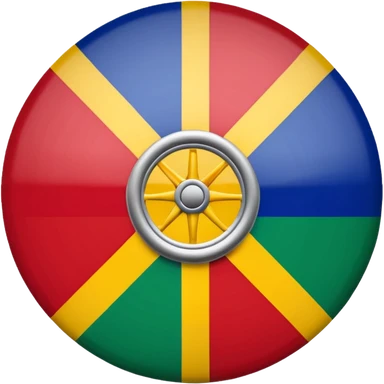 Emoji drapeau gitan bleu en haut vert en bas avec une roue rouge au millieu roue en plein millieu du drapeau emoji
