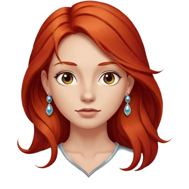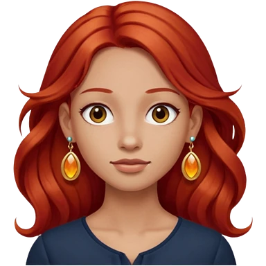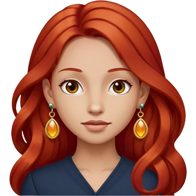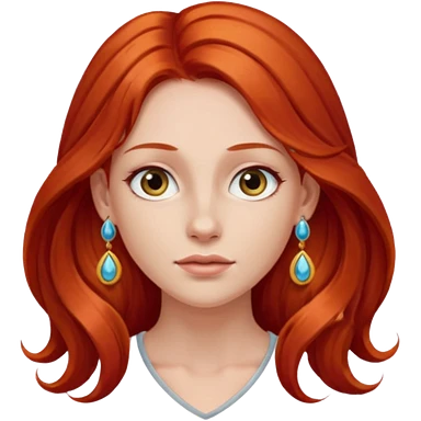une personne joli, aved des cheveux long roux, des boucles d'oreilles de face dans un rond emoji