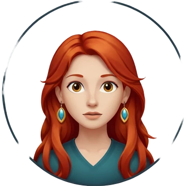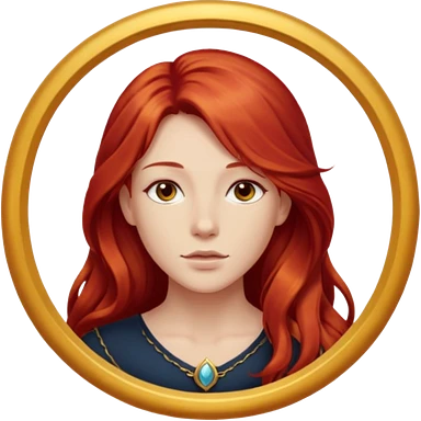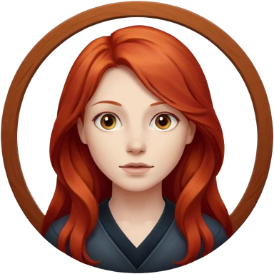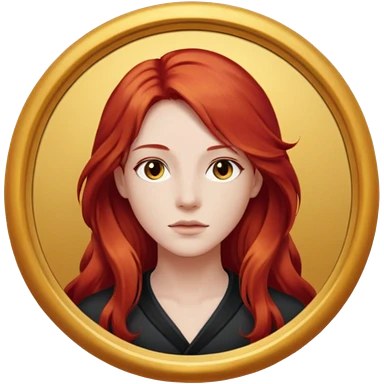 une personne joli, aved des cheveux long rouxde face dans un rond emoji