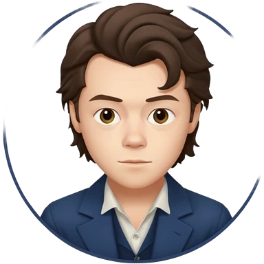 une joli personne qui ressemble a harry styles, avec beaucoup de details, de 3 quart dans un rond emoji