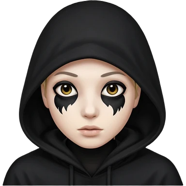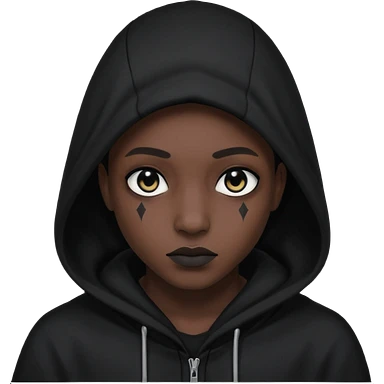 Une personne mystérieuse sous capuche noir avec les yeux noir emoji