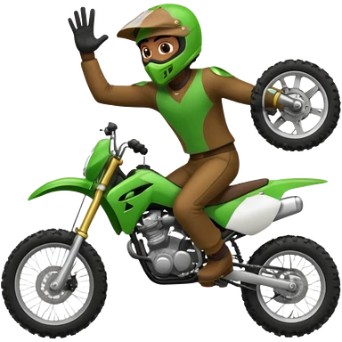 fait moi un emojie en moto vert avec un bandit qui cabre sur une moto cross emoji