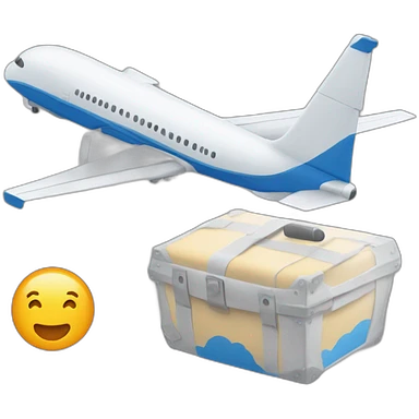 Un avion de dessin animé rouge et blanc volant à travers des nuages floconneux dans un ciel bleu clair. La scène est encadrée par une bordure circulaire, avec un style d'animation 3D ludique. emoji