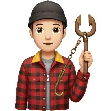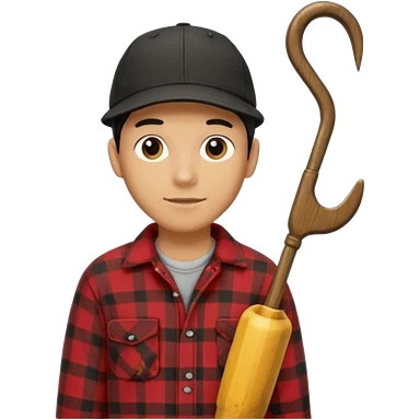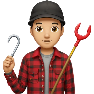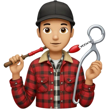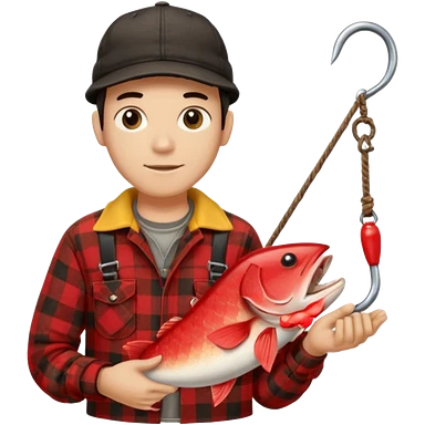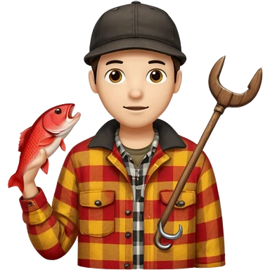 Ung man med svart keps röd gul rutig flanellskjorta hållandes stor torsk emoji | AI Emoji Generator
