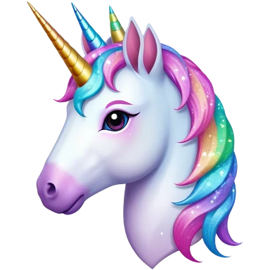 Unicorn, with sparkly horn, futuristic colored glitter hair emoji