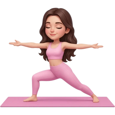 Chica haciendo yoga que sea bonita cabello castaño oscuro y ropa de yoga rosa claro emoji