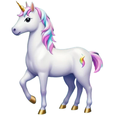 unicorn with green hair and big red earrings looking into camera and spectacle emoji