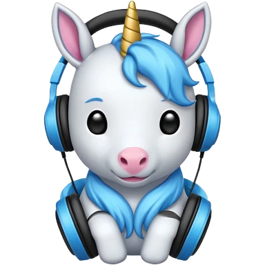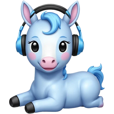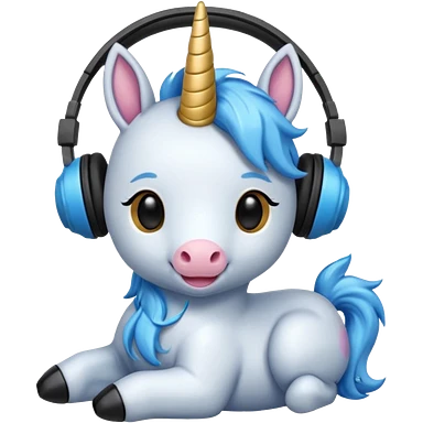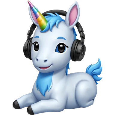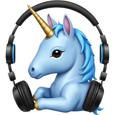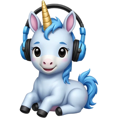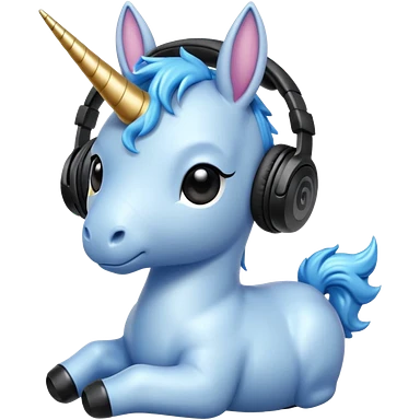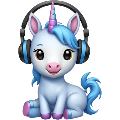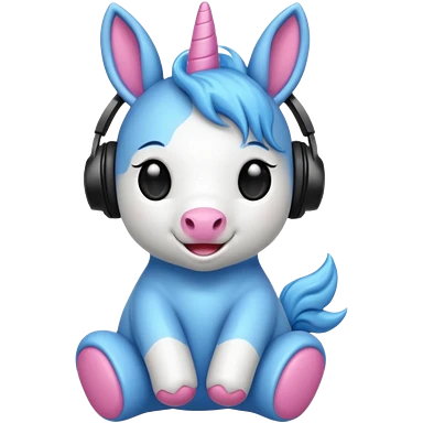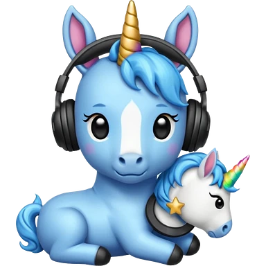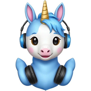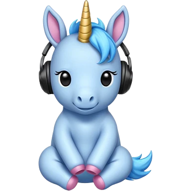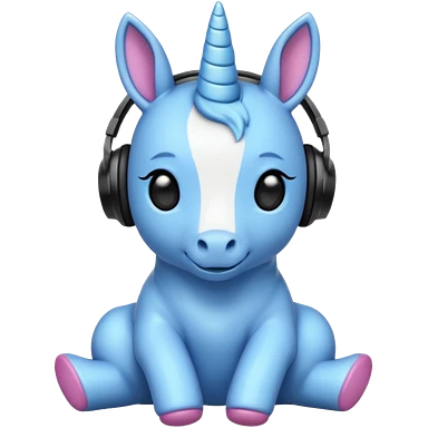 Unicornio bebé azul sentado escuchando música con auriculares negros emoji