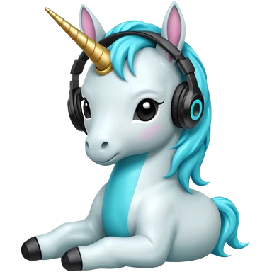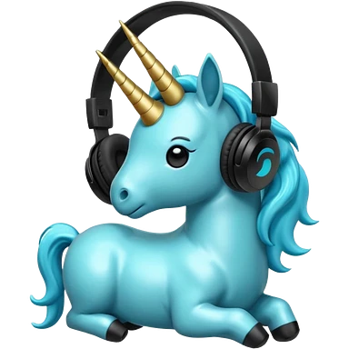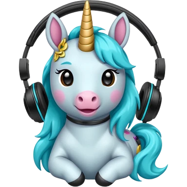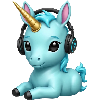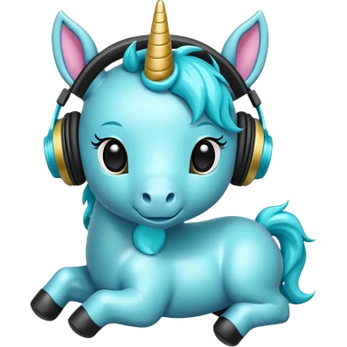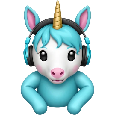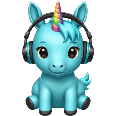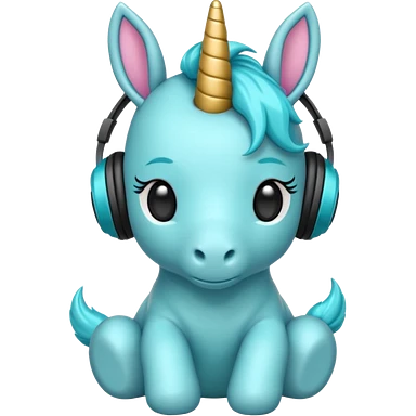 Unicornio bebé cyan sentado escuchando música con auriculares negros emoji