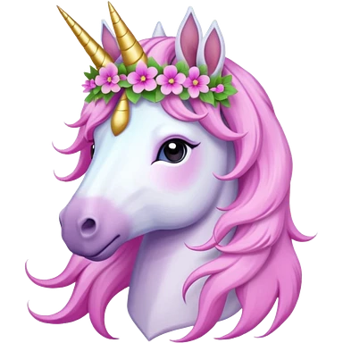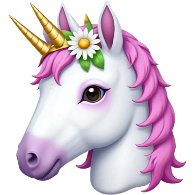 unicorn wearing spanisch daisy crown And has a braided mane emoji | AI Emoji Generator