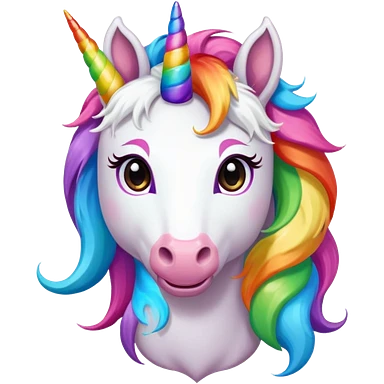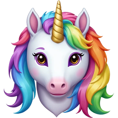 Unicorn, with sparkly horn, futuristic colored glitter hair emoji