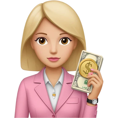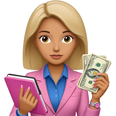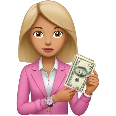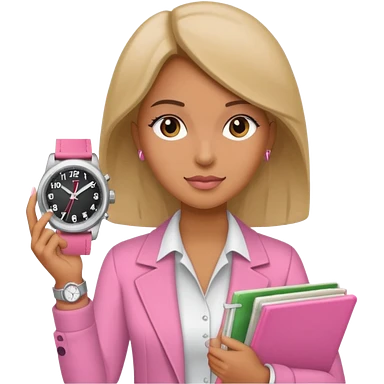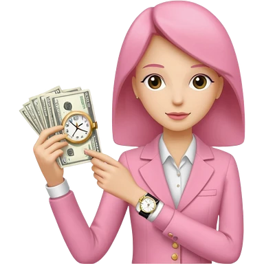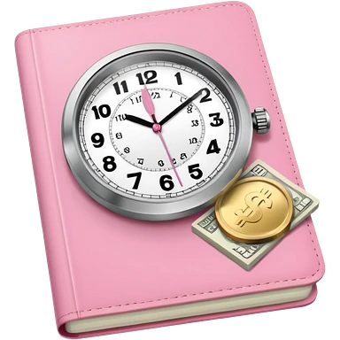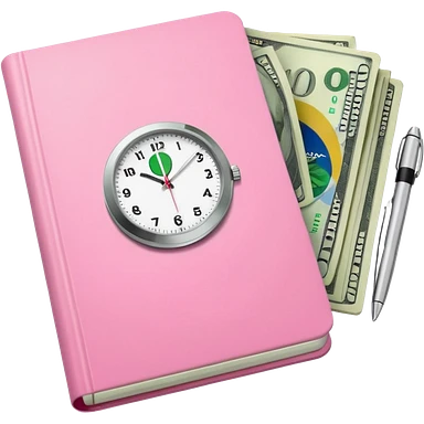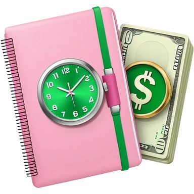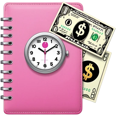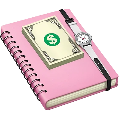 Libreta rosa, reloj femenino blanco y un dolar emoji