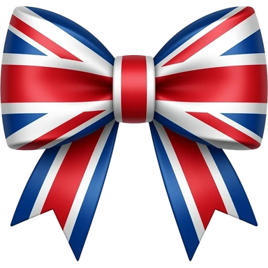Decorative bow with Union Jack pattern, isolated, centered, no background, no text, vivid red white and blue, elegant and neatly shaped emoji