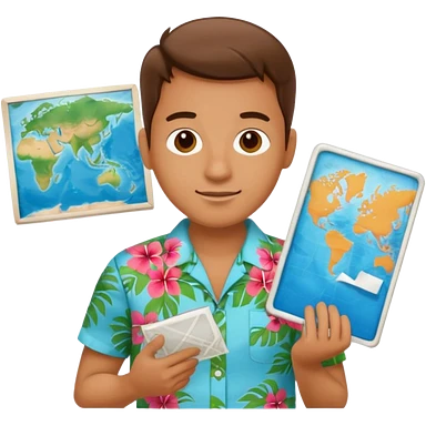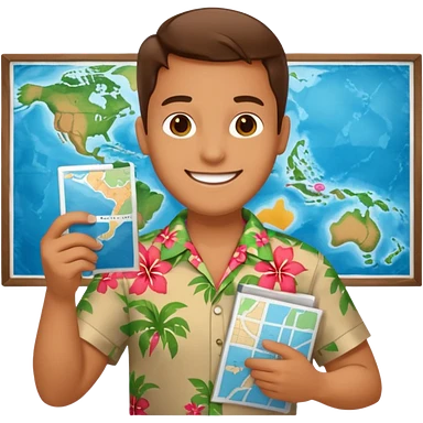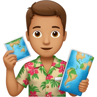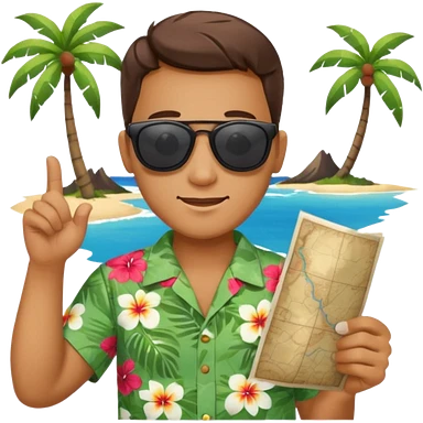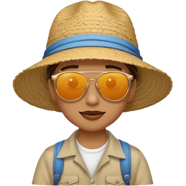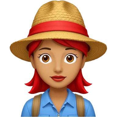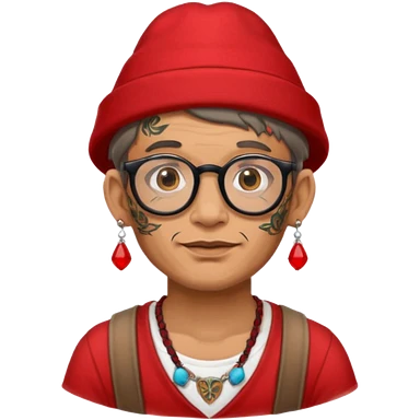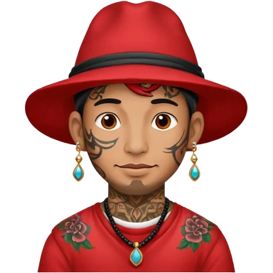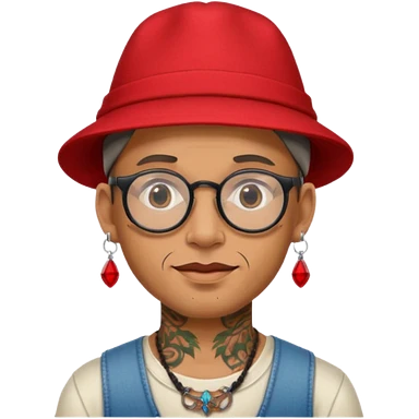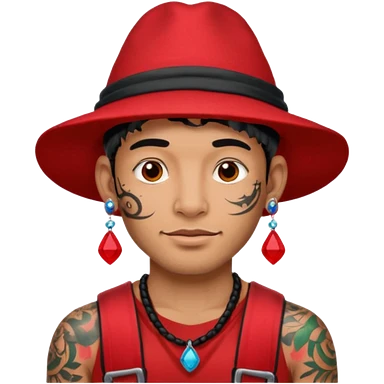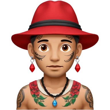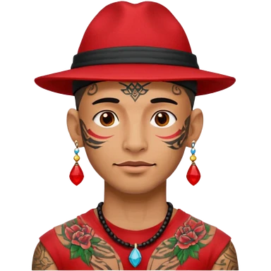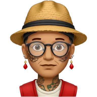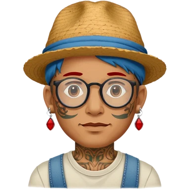 unique looking tourist with big unique red tourist sombrero and earrings, man with lots of tattoes and spectacles, blue hair showing emoji | AI Emoji Generator