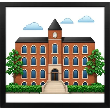 University lecture hall with pastel pink notebook and beige laptop open emoji