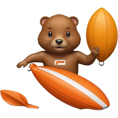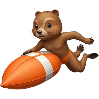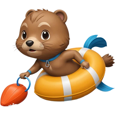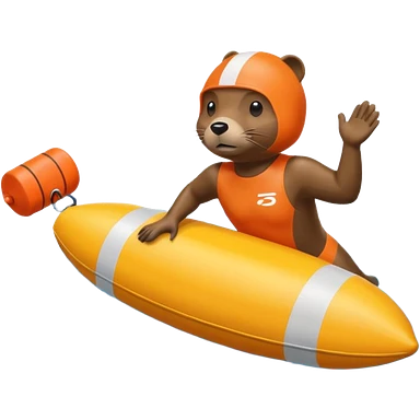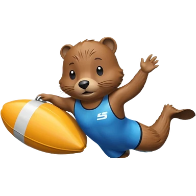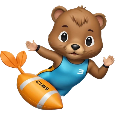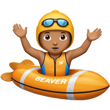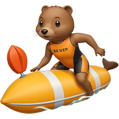 A focused beaver swimmer wearing a racing suit, diving past a floating buoy. emoji