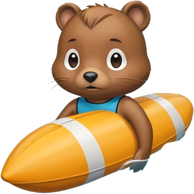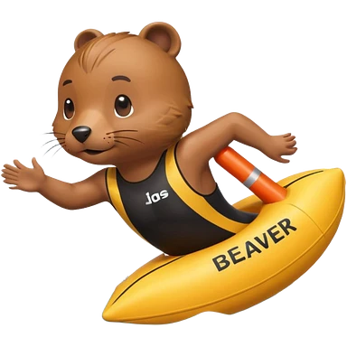 A focused beaver swimmer wearing a racing suit, diving past a floating buoy chibi cute emoji