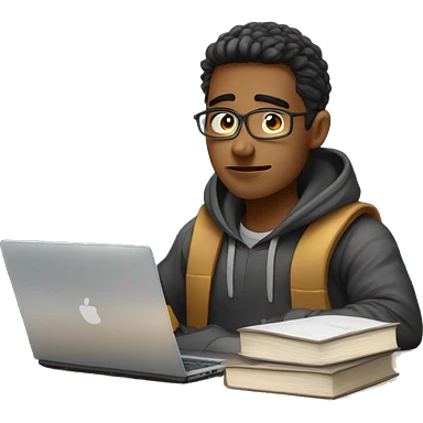 An university student in a blue hoodie with the hood down, black joggers with white sneakers carrying a closed laptop in one of his hand on the side of his body sideways and he is wearing thin sunglasses with black lens. emoji
