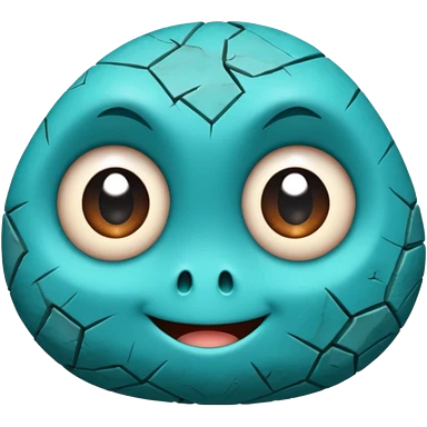 One small turquoise rock creature, rounded but still clearly a rock with cracks and facets, big expressive eyes and a shy smile, emoji