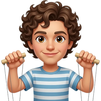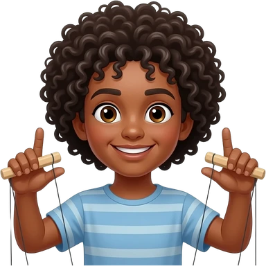 Uomo occhi marroni capelli ricci che gestisce le sue marionette emoji | AI Emoji Generator