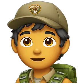 Boy-scout with his right hand up with palm facing front, with fingers straight except the thumb that is positioned over a bent pinky emoji