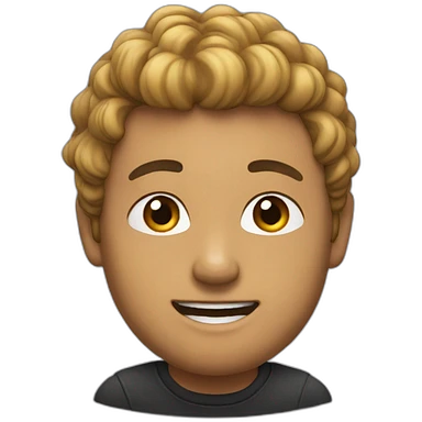man's head with dark brown hair, holding a laptop and a camera, upbeat and approachable emoji