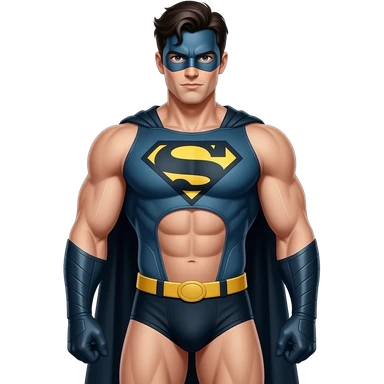 upper body male figure with superhero face, hair, and body standing with muscular build in thin, narrow superhero-themed underwear emoji