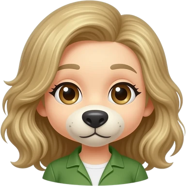 A girl with green eyes and black hair with a braid and wearing a tank top with overalls and flip flops and beside her a pet emoji