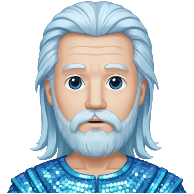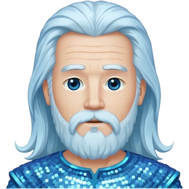 Uranus, The Father Sky with long white hair and beard, pale blue sequin outfit emoji