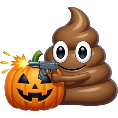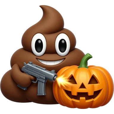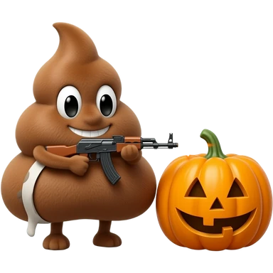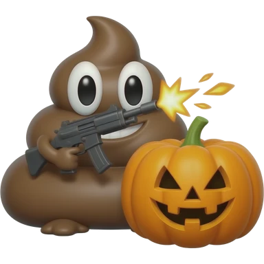 Pelúcia De Cocô Com Um Metralhadora dando tiros na abóbora de Halloween emoji