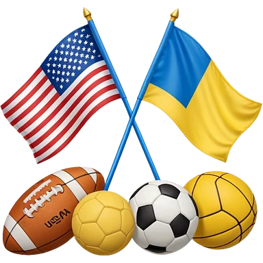 usa and ukraine flags together, sport equipment under emoji