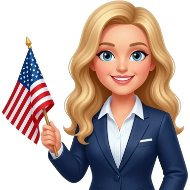 a teacher with long wavy blond hair with the usa flag in the right hand emoji