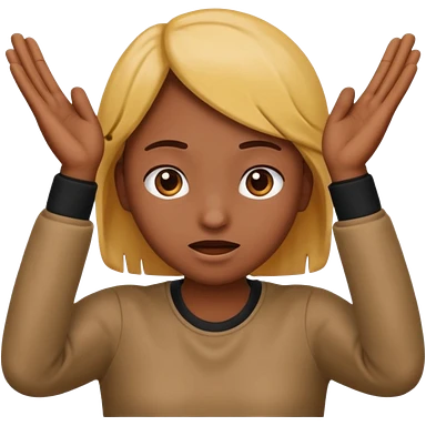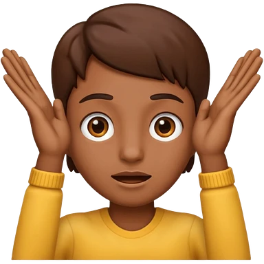 Nervous emoji + hands up emoji. Remove flow effects at the very top the of the hands so the head can be between the hands emoji