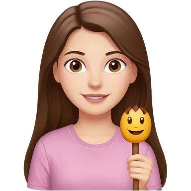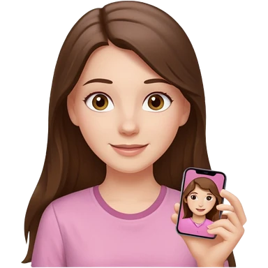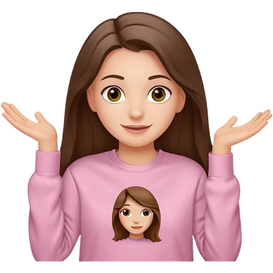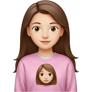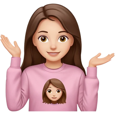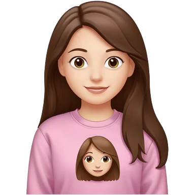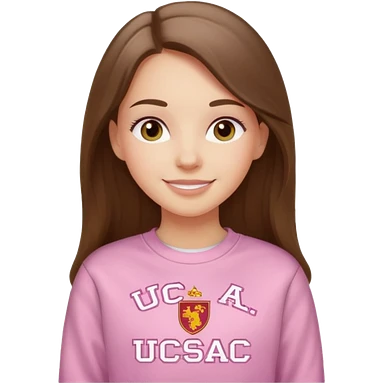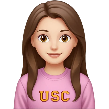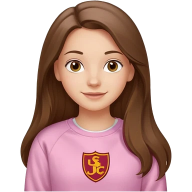 happy white long brunette hair girl with hazel eyes and in light pink USC sweatshirt emoji