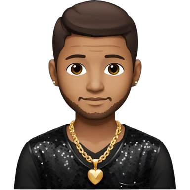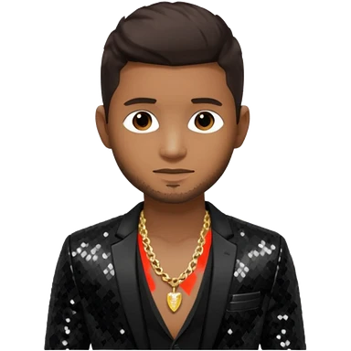 Usher with dark brown hair, black sequin dress shirt with necklace and chest out emoji